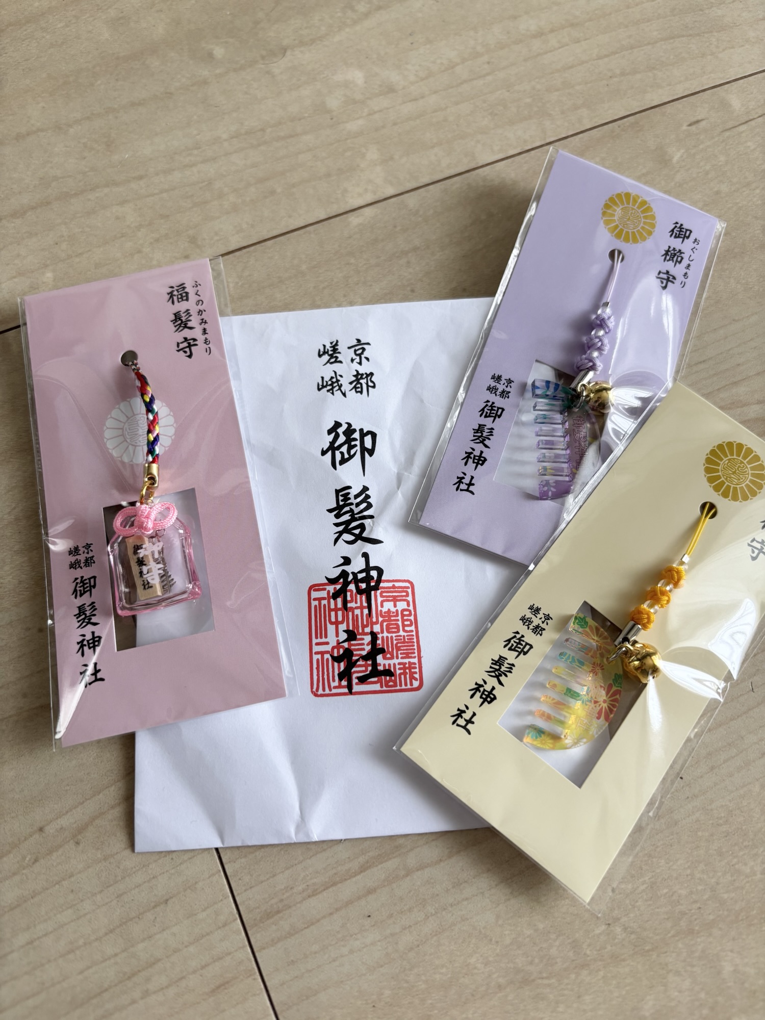 櫛のお守りと、、ちょいと袋がグチャってなってて、すいません泪